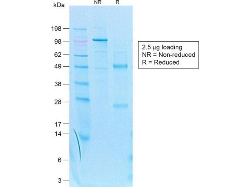 Known Application: Flow Cytometry (0.5-1 μg/million cells), Western Blot (0.5-2 μg/mL),Immunohistochemistry (Formalin-fixed) (0.5-1.0 μg/mL for 30 minutes at RT)(Staining of formalin-fixed tissues is enhanced by boiling tissue sections in 10 mM Tris with 1 mM EDTA, pH 9.0 for 10-20 min followed by cooling at RT for 20 minutes)Optimal dilution for a specific application should be determined.