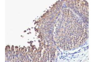 Positive Control: A431, HeLa, MCF7 cells. Esophagus or tonsil.
