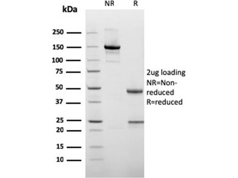 Known Application: Immunohistochemistry (Formalin-fixed) (0.1-0.2 μg/mL for 30 min at RT)(Staining of formalin-fixed tissues requires boiling tissue sections in 10 mM citrate buffer, pH 6.0, for 10-20 min followed by cooling at RT for 20 minutes)Optimal dilution for a specific application should be determined.