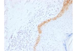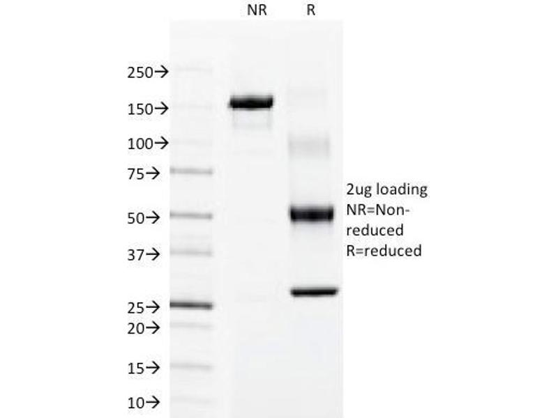 Known Application: Immunohistochemistry (Formalin-fixed) (0.1-0.2 μg/mL for 30 min at RT)(Staining of formalin-fixed tissues requires boiling tissue sections in 10 mM citrate buffer, pH 6.0, for 10-20 min followed by cooling at RT for 20 minutes)Optimal dilution for a specific application should be determined.