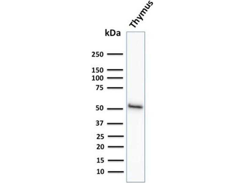 Known Application: Flow Cytometry (0.5-1 μg/million cells), Western Blot (1-2 μg/mL), Immunohistochemistry (Formalin-fixed) (1-2 μg/mL for 30 min at RT)(Staining of formalin-fixed tissues requires boiling tissue sections in 10 mM Citrate Buffer, pH 6.0, for 10-20 min followed by cooling at RT for 20 minutes)Optimal dilution for a specific application should be determined.