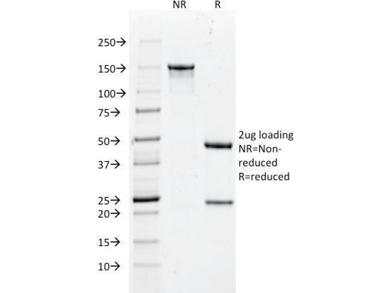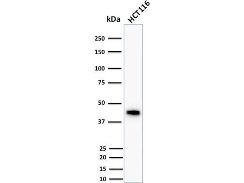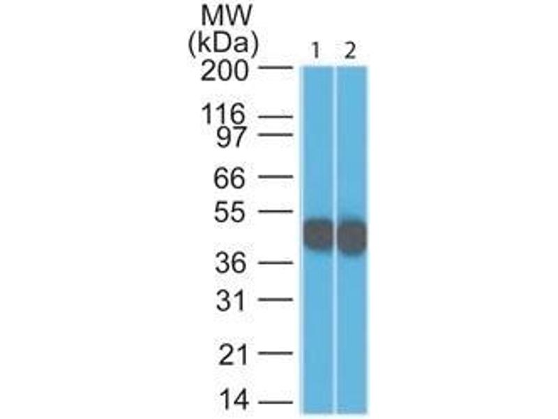 Known Application: Flow Cytometry (1-2 μg/million cells), Immunofluorescence (1-2 μg/mL), Western Blot (1-2 μg/mL), Immunohistochemistry (Formalin-fixed) (0.5-1 μg/mL for 30 min at RT)(Staining of formalin-fixed tissues requires boiling tissue sections in 10 mM Citrate Buffer, pH 6.0, for 10-20 min followed by cooling at RT for 20 minutes)Optimal dilution for a specific application should be determined.