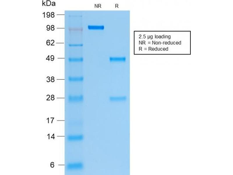 Known Application: Flow Cytometry (0.5-1 μg/million cells), Immunofluorescence (1-2 μg/mL), Western Blot (1-2 μg/mL), Immunohistochemistry (Formalin-fixed) (0.5-1 μg/mL for 30 min at RT)(Staining of formalin-fixed tissues requires boiling tissue sections in 10 mM Citrate Buffer, pH 6.0, for 10-20 min followed by cooling at RT for 20 minutes)Optimal dilution for a specific application should be determined.