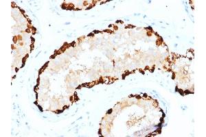Known Application: Immunohistochemistry (Formalin-fixed) (0.5-1 μg/mL for 30 min at RT)(Staining of formalin-fixed tissues requires boiling tissue sections in 10 mM Citrate Buffer, pH 6.0, for 10-20 min followed by cooling at RT for 20 minutes)Optimal dilution for a specific application should be determined.