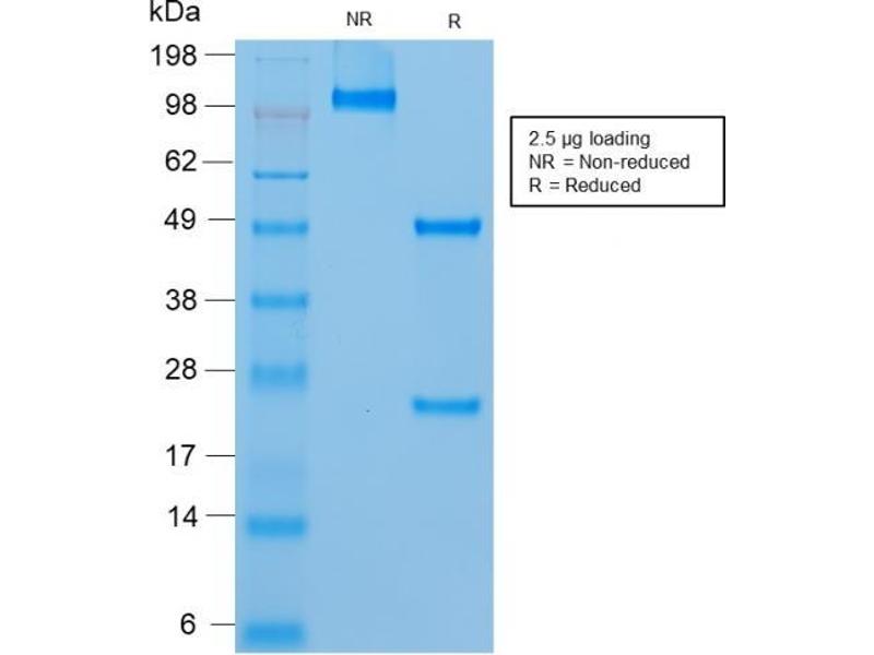 Known Application: Immunohistochemistry (Formalin-fixed) (0.5-1.0 μg/mL for 30 minutes at RT)(Staining of formalin-fixed tissues requires boiling tissue sections in 1 mM EDTA, pH 8.0, for 10-20 min followed by cooling at RT for 20 minutes)Optimal dilution for a specific application should be determined.