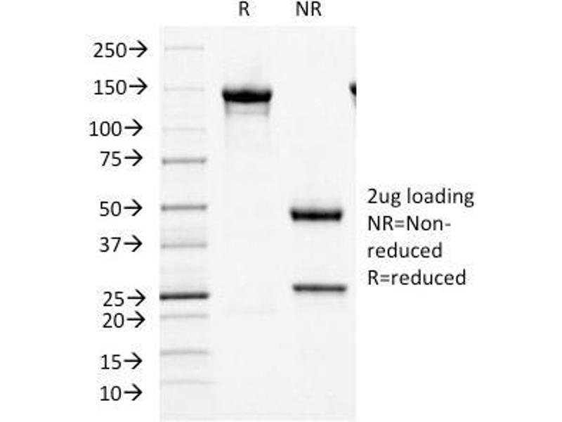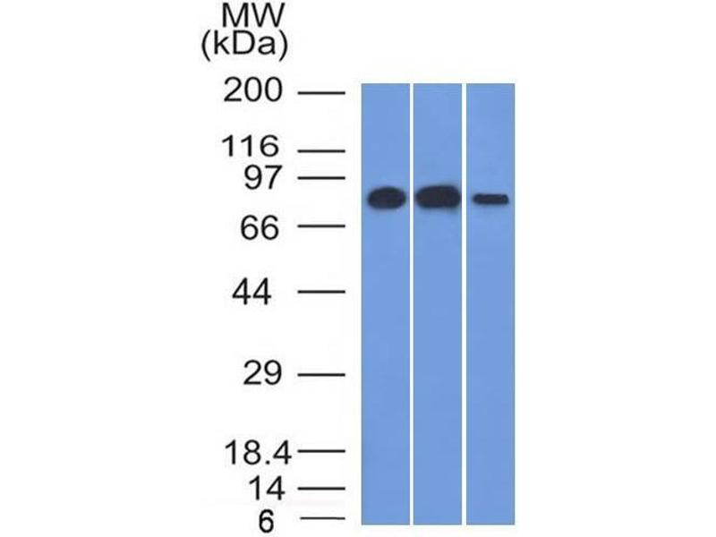 Known Application: Western Blot (1-2 μg/mL), Immunohistochemistry (Formalin-fixed) (1-2 μg/mL for 30 minutes at RT)(Staining of formalin-fixed tissues requires boiling tissue sections in 10 mM citrate buffer, pH 6.0, for 10-20 min followed by cooling at RT for 20 minutes)Optimal dilution for a specific application should be determined.