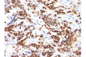 Known Application: Immunohistochemistry (Formalin-fixed) (0.5-1 μg/mL for 30 min at RT)(Staining of formalin-fixed tissues requires boiling tissue sections in 10 mM Citrate Buffer, pH 6.0, for 10-20 min followed by cooling at RT for 20 minutes)Optimal dilution for a specific application should be determined