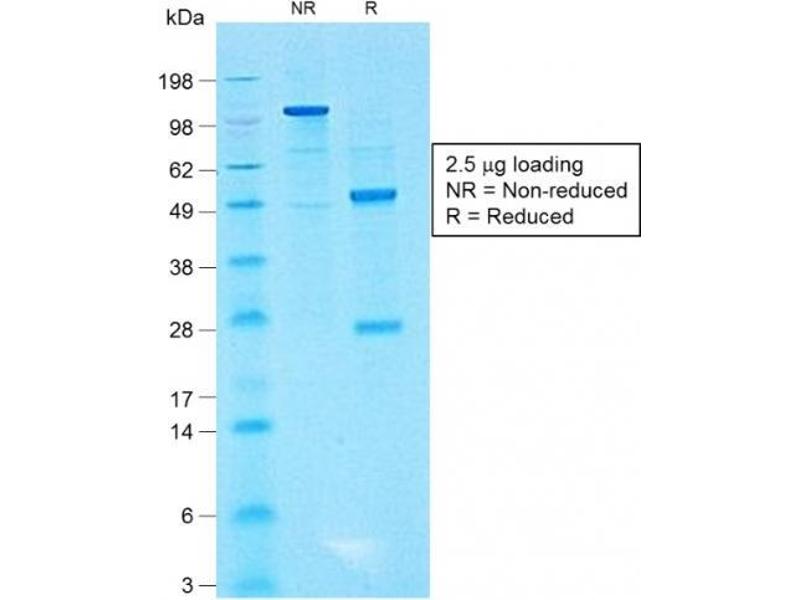 Known Application: Immunohistochemistry (Formalin-fixed) (5-10 μg/mL for 30 min at Room Temp)(Staining of formalin-fixed tissues requires boiling tissue sections in 10 mM citrate buffer, pH 6.0, for 10-20 min followed by cooling at RT for 20 minutes)Optimal dilution for a specific application should be determined.