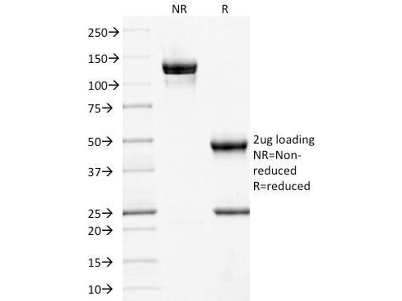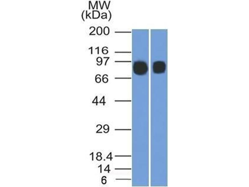 Known Application: ELISA (Use Ab at 2-4 μg/mL for coating) (Order Ab without BSA), Western Blot (1-2 μg/mL),Immunohistochemistry (Formalin-fixed) (1-2 μg/mL for 30 minutes at RT)(Staining of formalin-fixed tissues requires boiling tissue sections in 10 mM Tris with 1 mM EDTA, pH 9.0, for 10-20 min followed by cooling at RT for 20 minutes)Optimal dilution for a specific application should be determined.