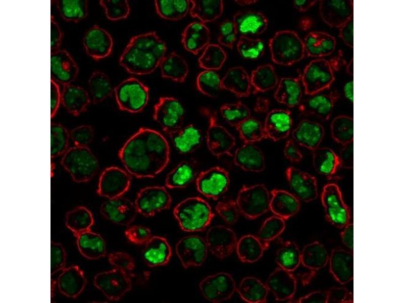 Known Application: Flow Cytometry (0.5-1 μg/million cells), Immunofluorescence (0.5-1 μg/mL), Western Blot (0.5-1 μg/mL), Immunohistochemistry (Formalin-fixed) (0.5-1.0 μg/mL for 30 minutes at RT)(Staining of formalin-fixed tissues is enhanced by boiling tissue sections in 10 mM Citrate Buffer, pH 6.0, for 10-20 min followed by cooling at RT for 20 minutes)Optimal dilution for a specific application should be determined.