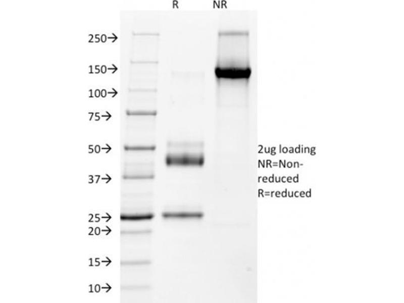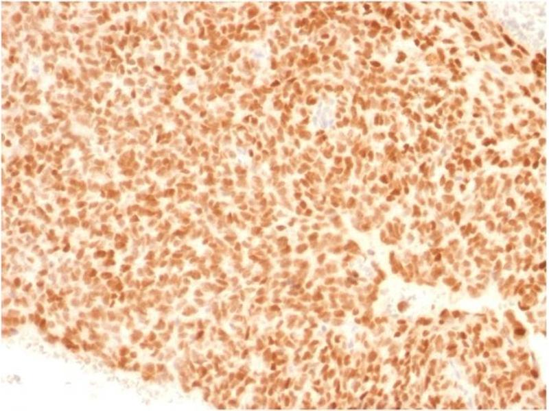Known Application: Immunohistochemistry (Formalin-fixed) (1-2 μg/mL for 30 minutes at RT)(Staining of formalin-fixed tissues requires boiling tissue sections in 10 mM citrate buffer, pH 6.0, for 10-20 min followed by cooling at RT for 20 minutes)Optimal dilution for a specific application should be determined.