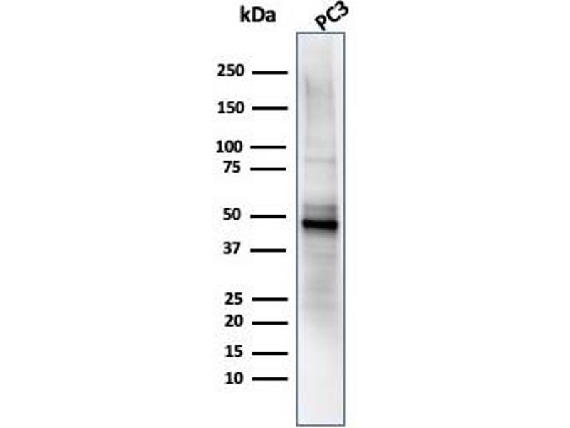 Positive Control: PC3 or LNCaP cells. Placental tissue lysate. Placenta, Prostate or Testicular carcinoma.
