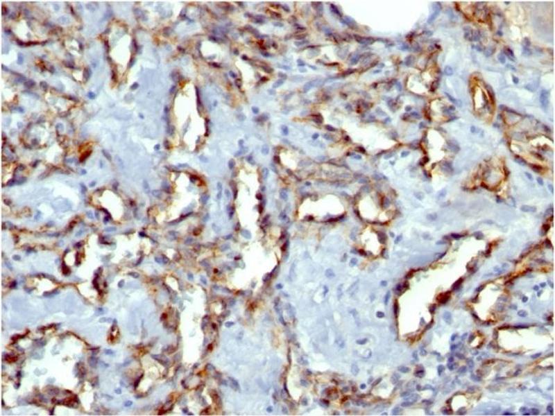 - CD31 (PECAM-1) is a transmembrane glycoprotein member of the immunoglobulin supergene family of adhesion molecules. CD31 is expressed by stem cells of the hematopoietic system and is primarily used to identify and concentrate these cells for experimental studies as well as for bone marrow transplantation. Anti-CD31 has shown to be highly specific and sensitive for vascular endothelial cells. Staining of nonvascular tumors (excluding hematopoietic neoplasms) is rare. CD31 MAb reacts with normal, benign, and malignant endothelial cells which make up blood vessel lining. The level of CD31 expression can help to determine the degree of tumor angiogenesis, and a high level of CD31 expression may imply a rapidly growing tumor and potentially a predictor of tumor recurrence.