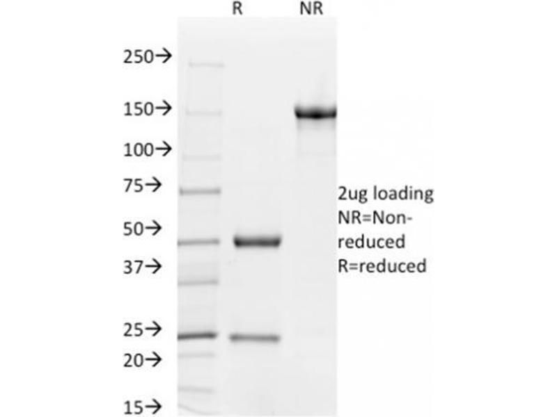 Known Application: Flow Cytometry (1-2 μg/million cells), Western Blot (1-2 μg/mL), ,Immunohistochemistry (Formalin-fixed) (1-2 μg/mL for 30 minutes at RT),(Staining of formalin-fixed tissues requires boiling tissue sections in 10 mM Tris with 1 mM EDTA, pH 9.0, for 10-20 min followed by cooling at RT for 20 minutes),Optimal dilution for a specific application should be determined.