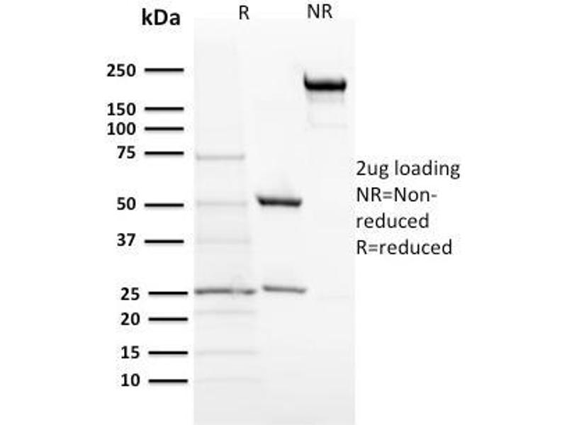 Known Application: ELISA (For coating, order Ab without BSA), Flow Cytometry (0.5-1 μg/million cells), Immunofluorescence (0.5-1 μg/mL), Immunohistochemistry (Formalin-fixed) (0.5-1.0 μg/mL for 30 minutes at RT) (Staining of formalin-fixed tissues requires boiling tissue sections in 10 mM Citrate Buffer, pH 6.0, for 10-20 min followed by cooling at RT for 20 minutes)Optimal dilution for a specific application should be determined.