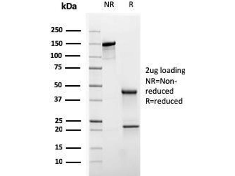 Known Application: Immunohistochemistry (Formalin-fixed) (0.1-0.2 μg/mL for 30 min at RT)(Staining of formalin-fixed tissues requires boiling tissue sections in 10 mM citrate buffer, pH 6.0, for 10-20 min followed by cooling at RT for 20 minutes)Optimal dilution for a specific application should be determined.