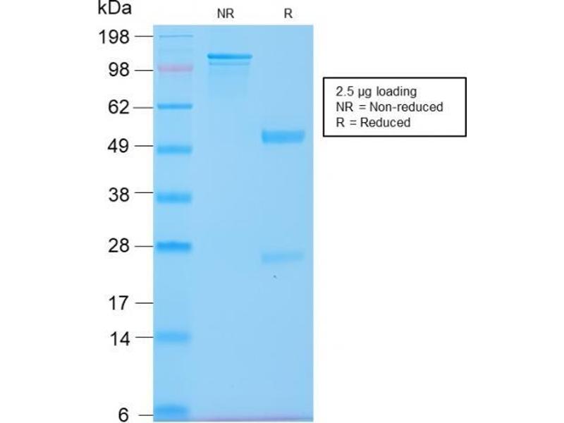 Known Application: Western Blot (0.5-2 μg/mL),Immunohistochemistry (Formalin-fixed) (1-2 μg/mL for 30 min at RT),(Staining of formalin-fixed tissues requires boiling tissue sections in 10 mM citrate buffer, pH 6.0, for 10-20 min followed by cooling at RT for 20 minutes),Optimal dilution for a specific application should be determined.