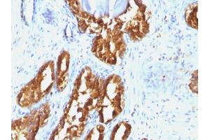 Known Application: Immunohistochemistry (Formalin-fixed) (1-2 μg/mL for 30 minutes at RT) (Staining of formalin-fixed tissues requires boiling tissue sections in 10 mM citrate buffer, pH 6.0, for 10-20 min followed by cooling at RT for 20 minutes)Optimal dilution for a specific application should be determined.