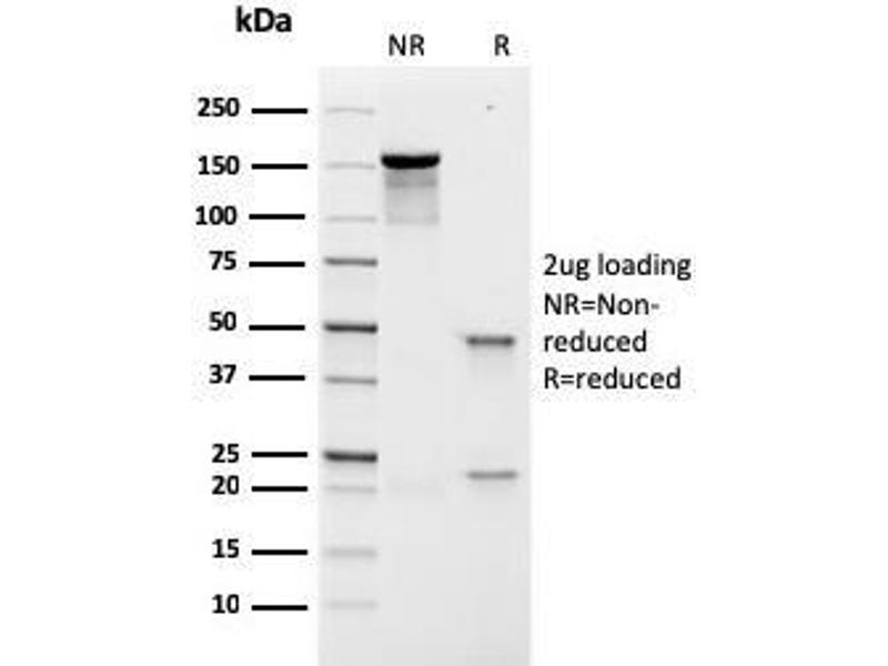 Known Application: Immunohistochemistry (Formalin-fixed. Not suitable for frozen tissues.) (0.5-1 μg/mL for 30 minutes at RT)(Staining of formalin-fixed tissues requires boiling tissue sections in 10 mM citrate buffer, pH 6.0, for 10-20 min followed by cooling at RT for 20 minutes)Optimal dilution for a specific application should be determined.