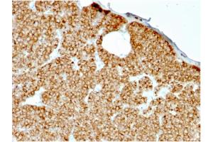 Known Application: Immunohistochemistry (Formalin-fixed. Not suitable for frozen tissues.) (0.5-1 μg/mL for 30 minutes at RT)(Staining of formalin-fixed tissues requires boiling tissue sections in 10 mM citrate buffer, pH 6.0, for 10-20 min followed by cooling at RT for 20 minutes)Optimal dilution for a specific application should be determined.