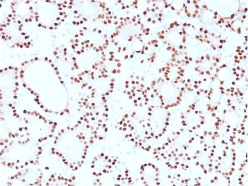 Known Application: Immunohistochemistry (Formalin-fixed) (1-2 μg/mL for 30 minutes at RT)(Staining of formalin-fixed tissues requires boiling tissue sections in 10 mM citrate buffer, pH 6.0, for 10-20 min followed by cooling at RT for 20 minutes)Optimal dilution for a specific application should be determined.