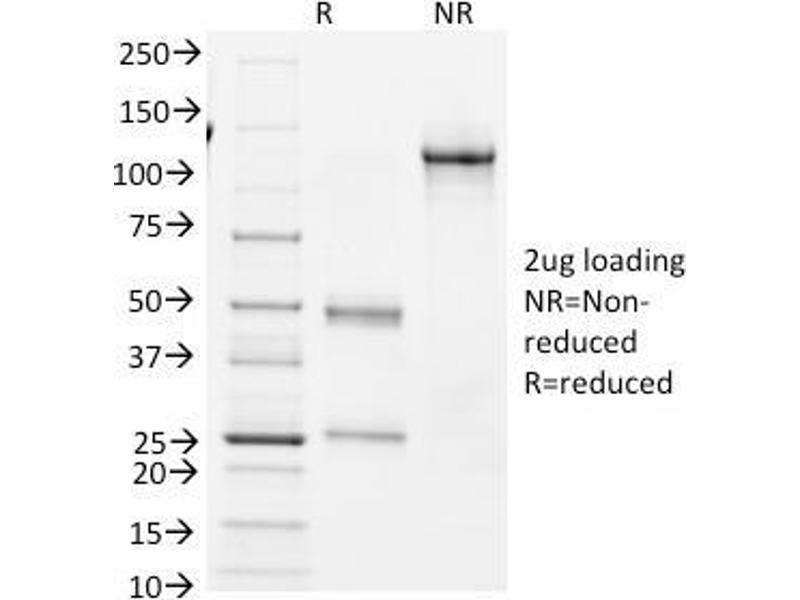 Known Application: ELISA (Use Ab at 2-4 μg/mL for coating) (Order Ab without BSA), Immunohistochemistry (Formalin-fixed) (1-2 μg/mL for 30 minutes at RT)(Staining of formalin-fixed tissues requires boiling tissue sections in 10 mM citrate buffer, pH 6.0, for 10-20 min followed by cooling at RT for 20 minutes)Optimal dilution for a specific application should be determined.