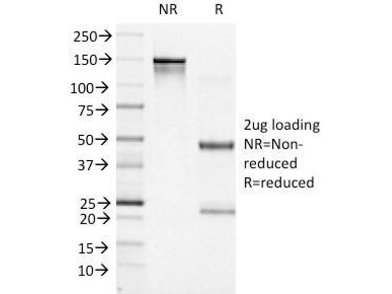 Known Application: Immunohistochemistry (Formalin-fixed) (1-2ug/ml for 30 minutes at RT)(Staining of formalin-fixed tissues requires boiling tissue sections in 10mM citrate buffer, pH 6.0, for 10-20 min followed by cooling at RT for 20 minutes)Optimal dilution for a specific application should be determined.