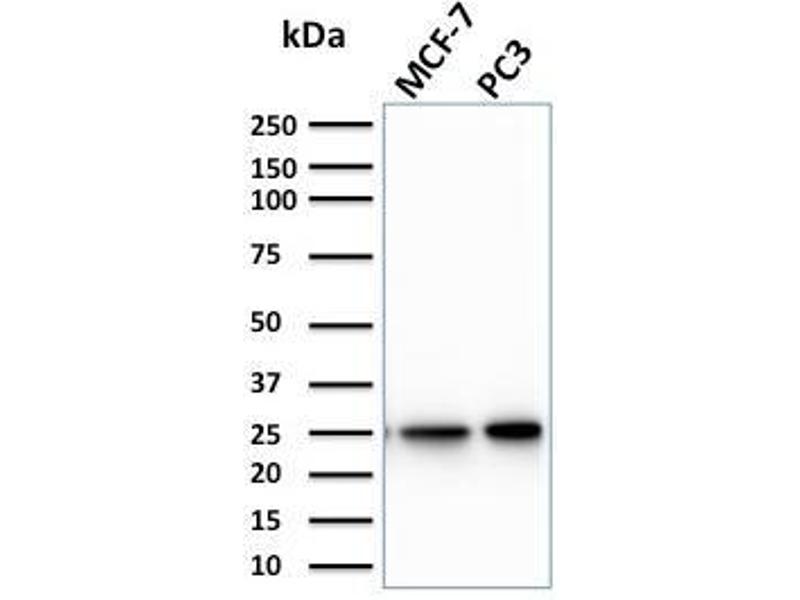 Positive Control: MCF-7, PC-3, HT29, K562 or Jurkat cell lysates. Human appendix or testis.