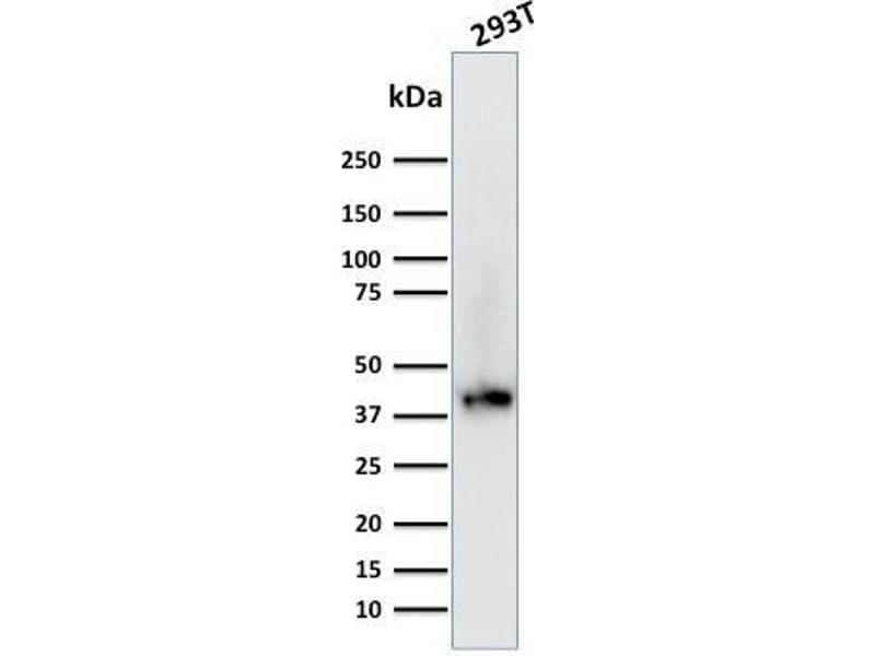 Known Application: Western Blot (1-2 μg/mL),Immunohistochemistry (Formalin-fixed) (1-2 μg/mL for 30 minutes at RT)(Staining of formalin-fixed tissues requires boiling tissue sections in 10 mM Citrate Buffer, pH 6.0, for 10-20 min followed by cooling at RT for 20 minutes)Optimal dilution for a specific application should be determined.