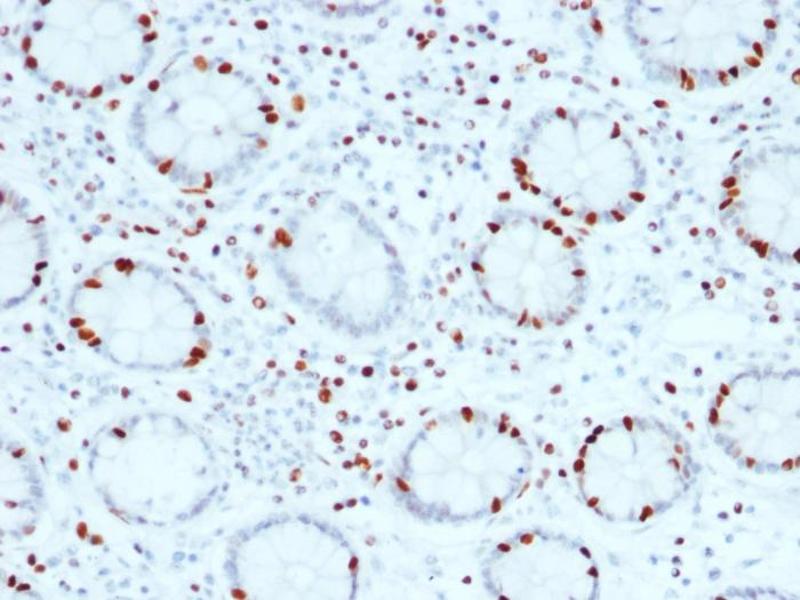 Known Application: Immunohistochemistry (Formalin-fixed) (1-2 μg/mL for 30 minutes at RT)(Staining of formalin-fixed tissues requires boiling tissue sections in 10 mM citrate buffer, pH 6.0, for 10-20 min followed by cooling at RT for 20 minutes)Optimal dilution for a specific application should be determined.