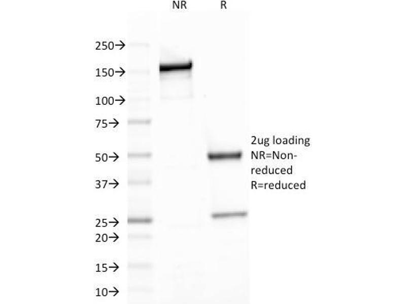 Known Application: ELISA (Use Ab at 2-4 μg/mL for coating) (Order Ab without BSA), Western Blot (1-2 μg/mL), Immunofluorescence (1-2 μg/mL), Immunohistochemistry (Formalin-fixed) (1-2 μg/mL for 30 minutes at RT),(Staining of formalin-fixed tissues requires boiling tissue sections in 10 mM citrate buffer, pH 6.0, for 10-20 min followed by cooling at RT for 20 minutes),Optimal dilution for a specific application should be determined.