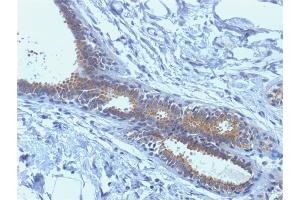Known Application: Immunohistochemistry (Formalin-fixed) (2-5 μg/mL for 60 minutes at RT)(Staining of formalin-fixed tissues is enhanced by boiling tissue sections in 10 mM Citrate Buffer, pH 6.0, for 10-20 min followed by cooling at RT for 20 minutes)Optimal dilution for a specific application should be determined.