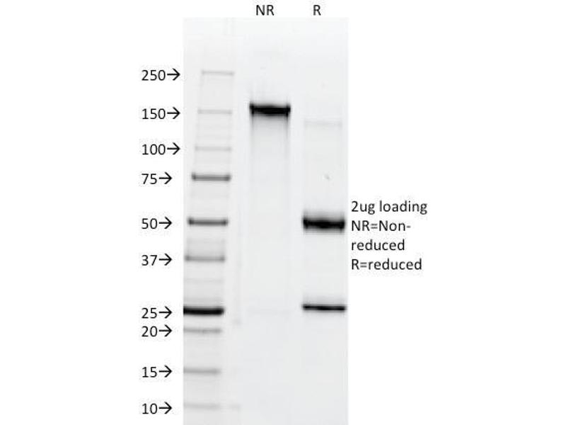 Known Application: Immunohistochemistry (Formalin-fixed) (1-2 μg/mL for 30 minutes at RT)(Staining of formalin-fixed tissues requires boiling tissue sections in 10 mM Citrate Buffer, pH 6.0, for 10-20 min followed by cooling at RT for 20 minutes), Optimal dilution for a specific application should be determined.