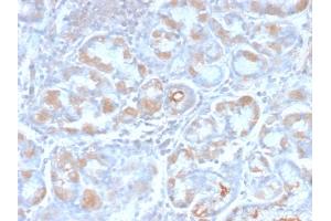 Known Application: Immunohistochemistry (Formalin-fixed) (0.5-1.0 μg/mL for 30 minutes at RT)(Staining of formalin-fixed tissues requires boiling tissue sections in 10 mM Citrate Buffer, pH 6.0, for 10-20 min followed by cooling at RT for 20 minutes)Optimal dilution for a specific application should be determined.