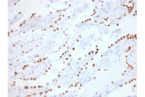 Known Application: Immunohistochemistry (Formalin-fixed) (1-2 μg/mL for 30 minutes at RT)(Staining of formalin-fixed tissues requires boiling tissue sections in 10 mM citrate buffer, pH 6.0, for 10-20 min followed by cooling at RT for 20 minutes)Optimal dilution for a specific application should be determined.