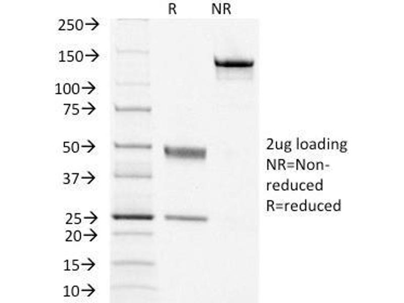 Known Application: Immunohistochemistry (Formalin-fixed) (1-2 μg/mL for 30 minutes at RT)(Staining of formalin-fixed tissues requires boiling tissue sections in 10 mM Tris with 1 mM EDTA, pH 9.0 for 10-20 min followed by cooling at RT for 20 minutes)Optimal dilution for a specific application should be determined.
