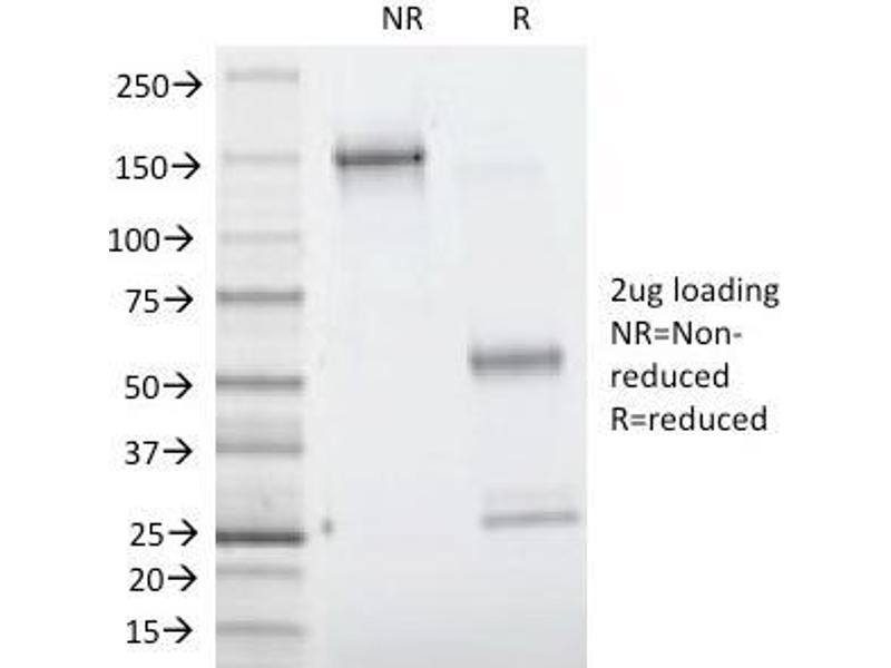 Known Application: Western Blot (1-2 μg/mL for 60 minutes at RT), Immunohistochemistry (Formalin-fixed) (0.25-0.5 μg/mL for 30 minutes at RT)(Staining of formalin-fixed tissues requires boiling tissue sections in 10 mM citrate buffer, pH 6.0, for 10-20 min followed by cooling at RT for 20 minutes)Optimal dilution for a specific application should be determined.