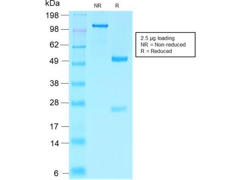 Known Application: Immunohistochemistry (Formalin-fixed) (0.5-1.0 μg/mL for 30 minutes at RT)(Staining of formalin-fixed tissues requires boiling tissue sections in 10 mM citrate buffer, pH 6.0, for 10-20 min followed by cooling at RT for 20 minutes)Optimal dilution for a specific application should be determined.