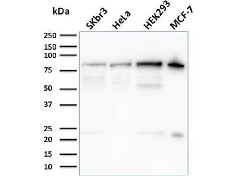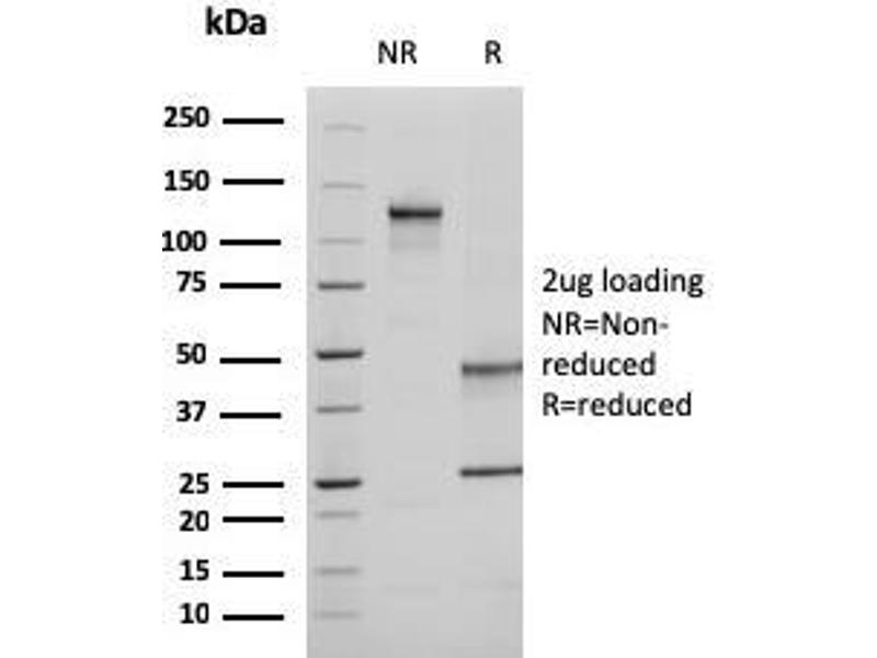 Known Application: Western Blot (1-2 μg/mL), Immunohistochemistry (Formalin-fixed) (1-2 μg/mL for 30 min at RT)(Staining of formalin-fixed tissues requires boiling tissue sections in 10 mM Citrate Buffer, pH 6.0, for 10-20 min followed by cooling at RT for 20 minutes)Optimal dilution for a specific application should be determined.