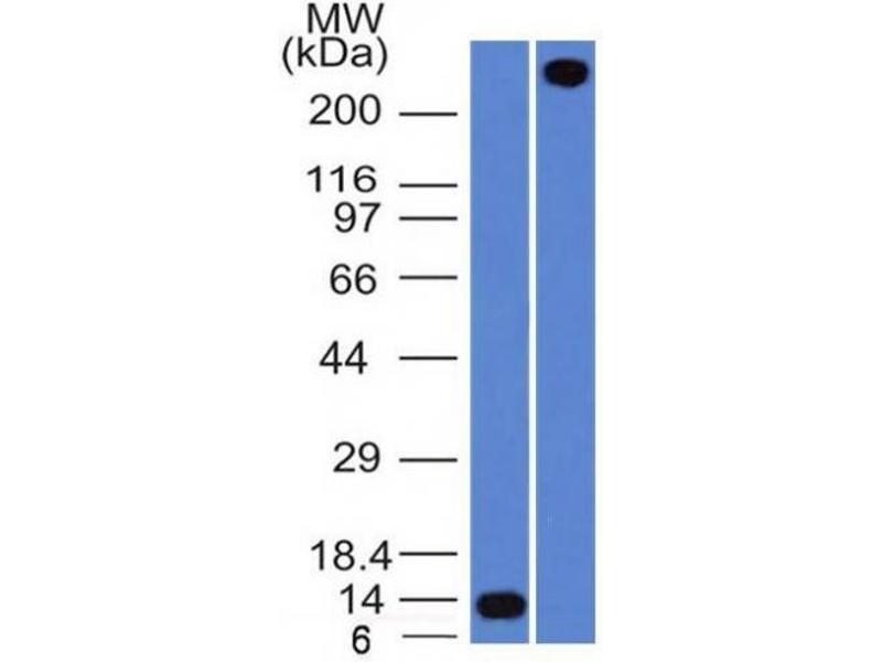 Known Application: Western Blot (0.5-1.0 μg/mL), Immunoprecipitation (0.5-1 μg/500 μg protein lysate),Immunohistochemistry (Formalin-fixed) (1-2 μg/mL for 30 minutes at RT) (Staining of formalin-fixed tissues requires boiling tissue sections in 10 mM Citrate Buffer, pH 6.0, for 10-20 min followed by cooling at RT for 20 minutes)Optimal dilution for a specific application should be determined.
