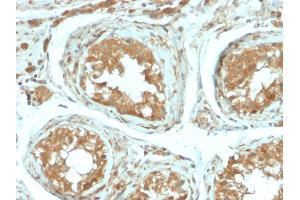 Known Application: ELISA (Use Ab at 2-4 μg/mL for coating) (Order Ab without BSA), Flow Cytometry (1-2 μg/million cells in 0.1ml), Immunofluorescence (1-2 μg/mL), Immunohistochemistry (Formalin-fixed) (1-2 μg/mL for 30 minutes at RT),(Staining of formalin-fixed tissues requires boiling tissue sections in 10 mM citrate buffer, pH 6.0, for 10-20 min followed by cooling at RT for 20 minutes),Optimal dilution for a specific application should be determined.