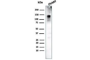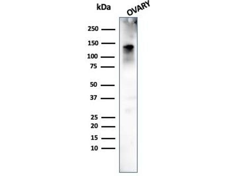 - Recognizes a protein of 150 kDa, which is identified as the high molecular weight variant of Caldesmon. Two closely related variants of human caldesmon have been identified which are different in their electrophoretic mobility and cellular distribution. The h-caldesmon variant (120'150 kDa) is predominantly expressed in smooth muscle whereas l-caldesmon (70'80 kDa) is found in non- muscle tissue and cells. Neither of the two variants has been detected in skeletal muscle. This MAb recognizes only the 150 kDa variant (h-caldesmon) in Western blots of human aortic media extracts and is unreactive with fibroblast extracts from cultivated human foreskin. Caldesmon is a developmentally regulated protein involved in smooth muscle and non-muscle contraction.