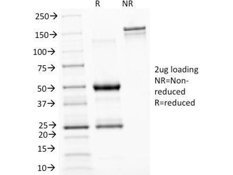 Known Application: Immunohistochemistry (Formalin-fixed) (0.5-1.0 μg/mL for 30 minutes at RT)(Staining of formalin-fixed tissues is enhanced by boiling tissue sections in 10 mM Tris with 1 mM EDTA, pH 9.0 for 10-20 min followed by cooling at RT for 20 minutes)Optimal dilution for a specific application should be determined.