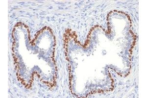Known Application: Immunohistochemistry (Formalin-fixed) (0.25-0.5 μg/mL for 30 minutes at RT),(Staining of formalin-fixed tissues requires boiling tissue sections in 10 mM citrate buffer, pH 6.0, for 10-20 min followed by cooling at RT for 20 minutes),Optimal dilution for a specific application should be determined.