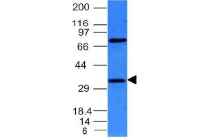 Known Application: Flow Cytometry (0.5-1 μg/million cells), Western Blot (0.5-1 μg/mL), Immunohistochemistry (Formalin-fixed) (0.5-1 μg/mL for 30 minutes at RT) (Staining of formalin-fixed tissues requires boiling tissue sections in 10 mM citrate buffer, pH 6.0, for 10-20 min followed by cooling at RT for 20 minutes)Optimal dilution for a specific application should be determined.