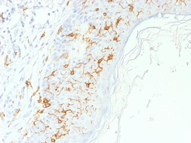 - At least five CD1 genes (CD1a, b, c, d, and e) are identified. CD1 proteins have been demonstrated to restrict T cell response to non-peptide lipid and glycolipid antigens and play a role in non-classical antigen presentation. CD1a is a non-polymorphic MHC Class 1 related cell surface glycoprotein, expressed in association with Beta-2 microglobulin. Anti-CD1a labels Langerhans cell histiocytosis (Histiocytosis X), extranodal histiocytic sarcoma, a subset of T-lymphoblastic lymphoma/leukemia, and interdigitating dendritic cell sarcoma of the lymph node. When combined with antibodies against TTF-1 and CD5, anti-CD1a is useful in distinguishing between pulmonary and thymic neoplasms since CD1a is consistently expressed in thymic lymphocytes in both typical and atypical thymomas, but only focally in 1/6 of thymic carcinomas and not in lymphocytes in pulmonary neoplasms. Anti-CD1a is reported to be a new marker for perivascular epithelial cell tumor (PEComa).