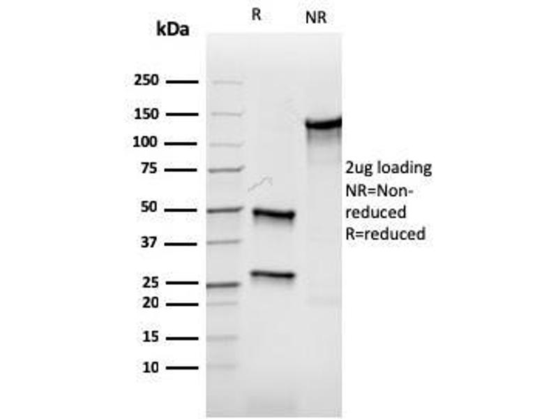 Known Application: Immunohistochemistry (Formalin-fixed) (1-2 μg/mL for 30 minutes at RT),(Staining of formalin-fixed tissues requires boiling tissue sections in 10 mM Citrate buffer, pH 6.0, for 10-20 min followed by cooling at RT for 20 minutes),Optimal dilution for a specific application should be determined.