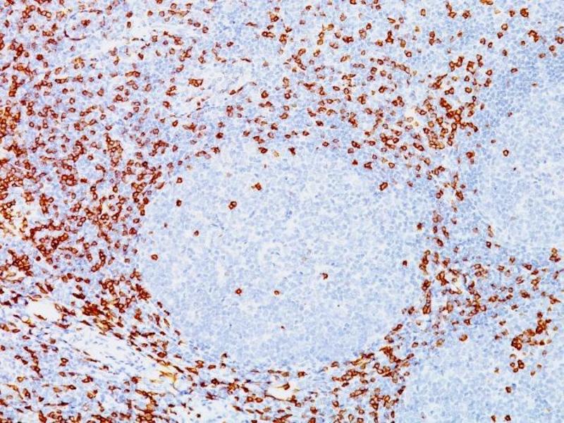 - CD8 is a cell surface receptor expressed either as a heterodimer with the CD8 beta chain (CD8 alpha/beta) or as a homodimer (CD8 alpha/alpha). A majority of thymocytes and a subpopulation of mature T cells and NK cells express CD8a. CD8 binds to MHC class 1 and through its association with protein tyrosine kinase p56lck plays a role in T cell development and activation of mature T cells. For mature T-cells, CD4 and CD8 are mutually exclusive, so anti-CD8, generally used in conjunction with anti-CD4. It is a useful marker for distinguishing helper/inducer T-lymphocytes, and most peripheral T-cell lymphomas are CD4+/CD8-. Anaplastic large cell lymphoma is usually CD4+ and CD8-, and in T-lymphoblastic lymphoma/leukemia, CD4 and CD8 are often co-expressed. CD8 is also found in littoral cell angioma of the spleen.