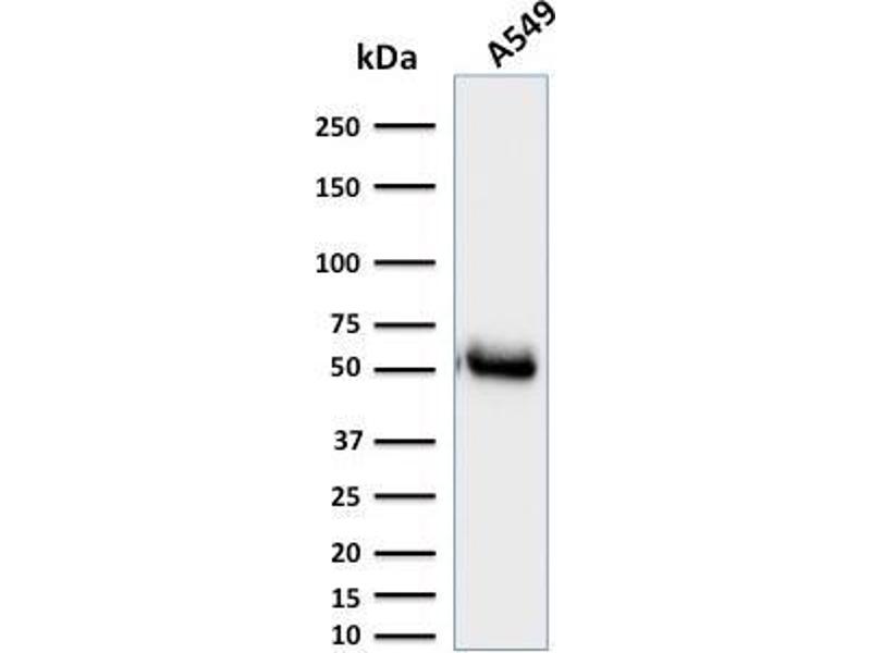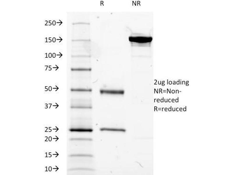 Known Application: Western Blot (1-2 μg/mL), Flow Cytometry (1-2 μg/million cells),Immunohistochemistry (Formalin-fixed) (1-2 μg/mL for 30 minutes at RT),(Staining of formalin-fixed tissues is enhanced by boiling tissue sections in 10 mM Tris with 1 mM EDTA, pH 9.0 for 10-20 min followed by cooling at RT for 20 minutes),Optimal dilution for a specific application should be determined.