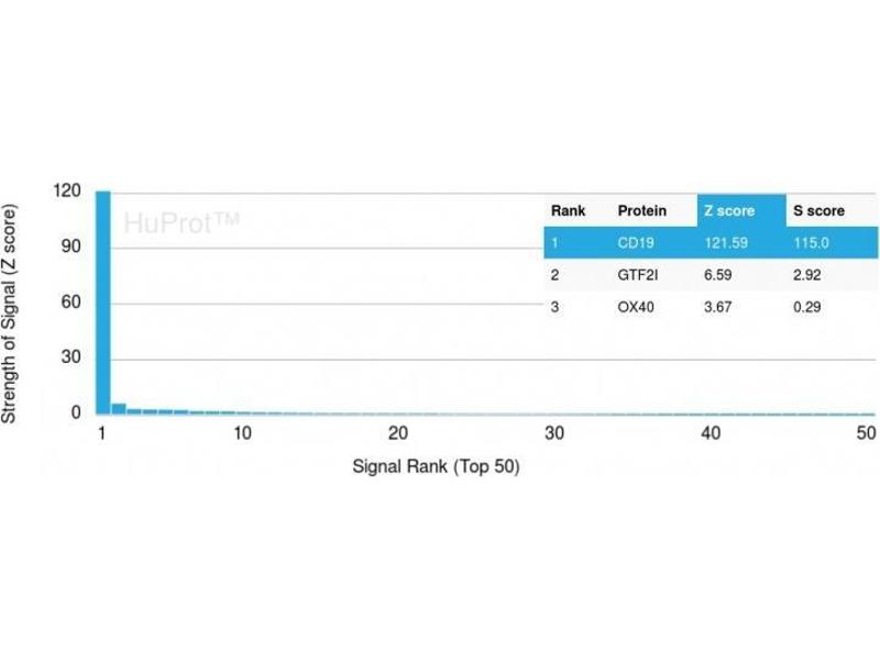 - CD19 is a transmembrane glycoprotein that contains two extracellular immunoglobulin-like domains. CD19 is present in both benign and malignant B-cells and is considered to be the most reliable surface marker of this lineage over a wide range of maturational stages. In normal lymphoid tissue, CD19 is observed in germinal centers, in mantle zone cells, and in scattered cells of the inter-follicular areas. Anti-CD19 exhibits an overall immunoreactivity pattern similar to those of the antibodies against CD20 and CD22. However, in contrast to CD20, expression of CD19 is continuous throughout B-cell development and through terminal differentiation of B-cells into plasma cells. Anti-CD19 positivity is seen in the vast majority of B-cell neoplasms commonly at a lower intensity than normal B-cell counterparts. Plasma cell neoplasms are nearly always negative, as are T-cell neoplasms.